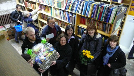 Am Donnerstag bereits übergaben Mitarbeiter der Stadtbibliothek den Vereinsmitgliedern einen Präsentkorb und bedankten sich auch wortreich bei den Helfern.