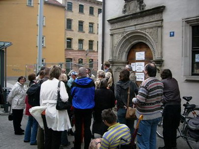 Start des Rundgangs ist das Bücherhaus in der Rannischen Str. 9.
